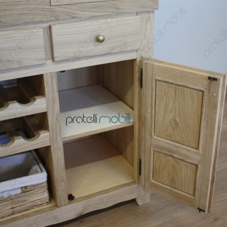 Mobile dispensa grezzo costruito artigianalmente con legno massello di rovere rustico, ideale per cucine country.