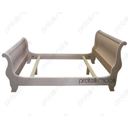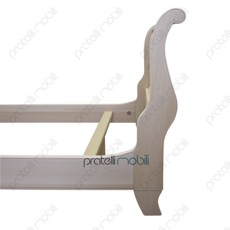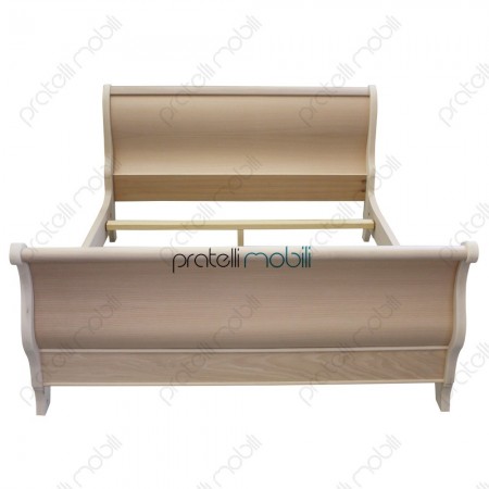 Letto grezzo a barca, dalla forma classica con testiera e pediera curve, disponibile in diverse misure.