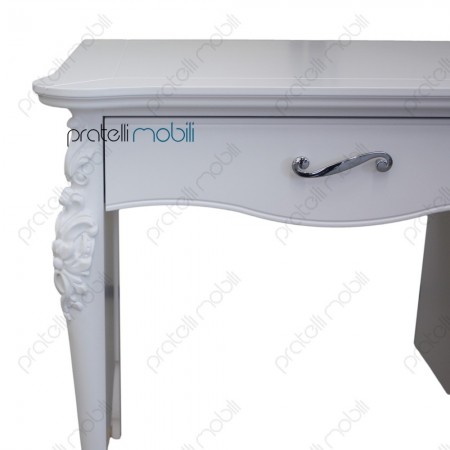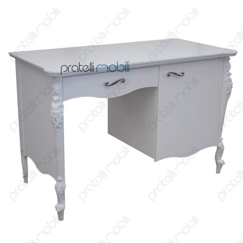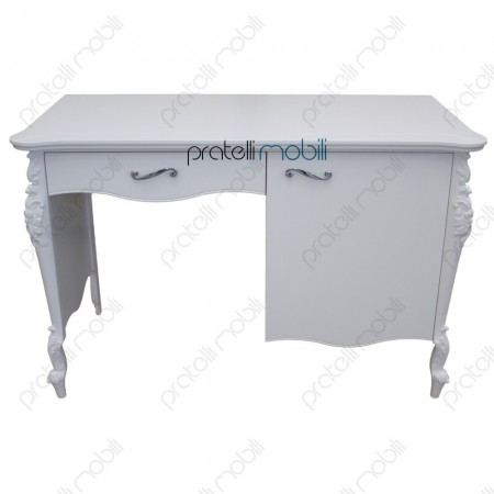 Scrittoio per albergo, costruito con legno massello di tiglio, legno listellare, laccato in colore bianco.